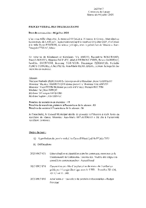 Liste des délibérations du conseil municipal du 9 juillet 2025