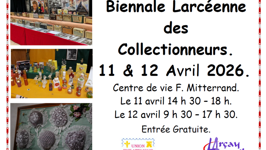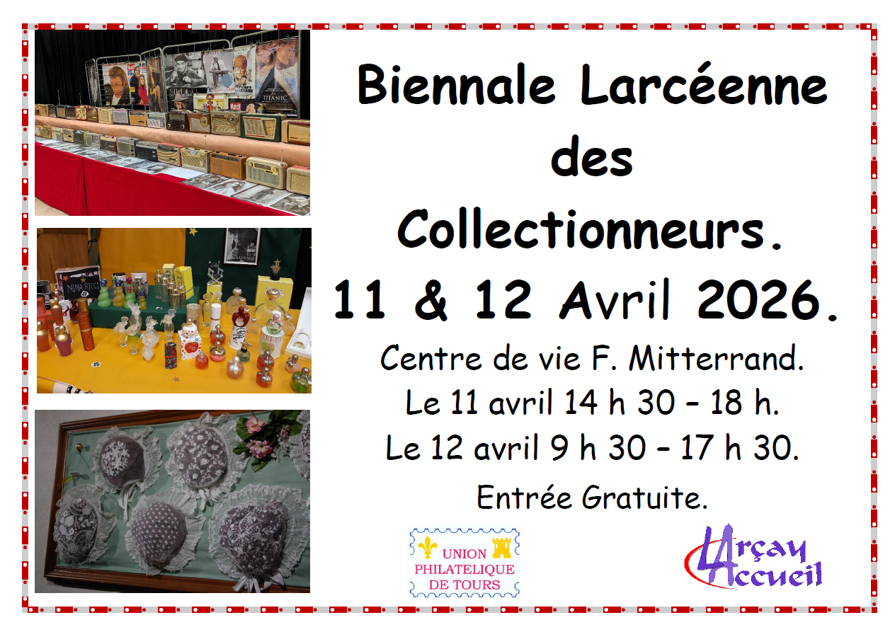 L'association Larçay Accueil et l'Union philatélique de Tours organisent leur première biennale larcéenne des collectionneurs, les samedi 11 et dimanche 12 avril 2026.