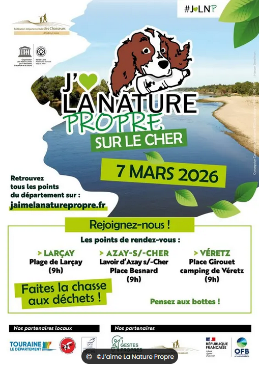 J'aime le Cher Propre est une opération de nettoyage du Cher. Une rencontre entre tous les amoureux de la nature qui souhaite la préserver.