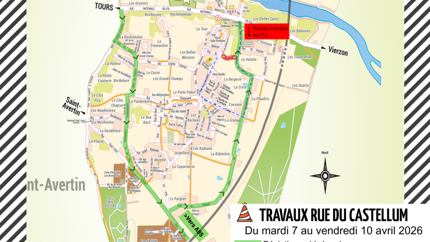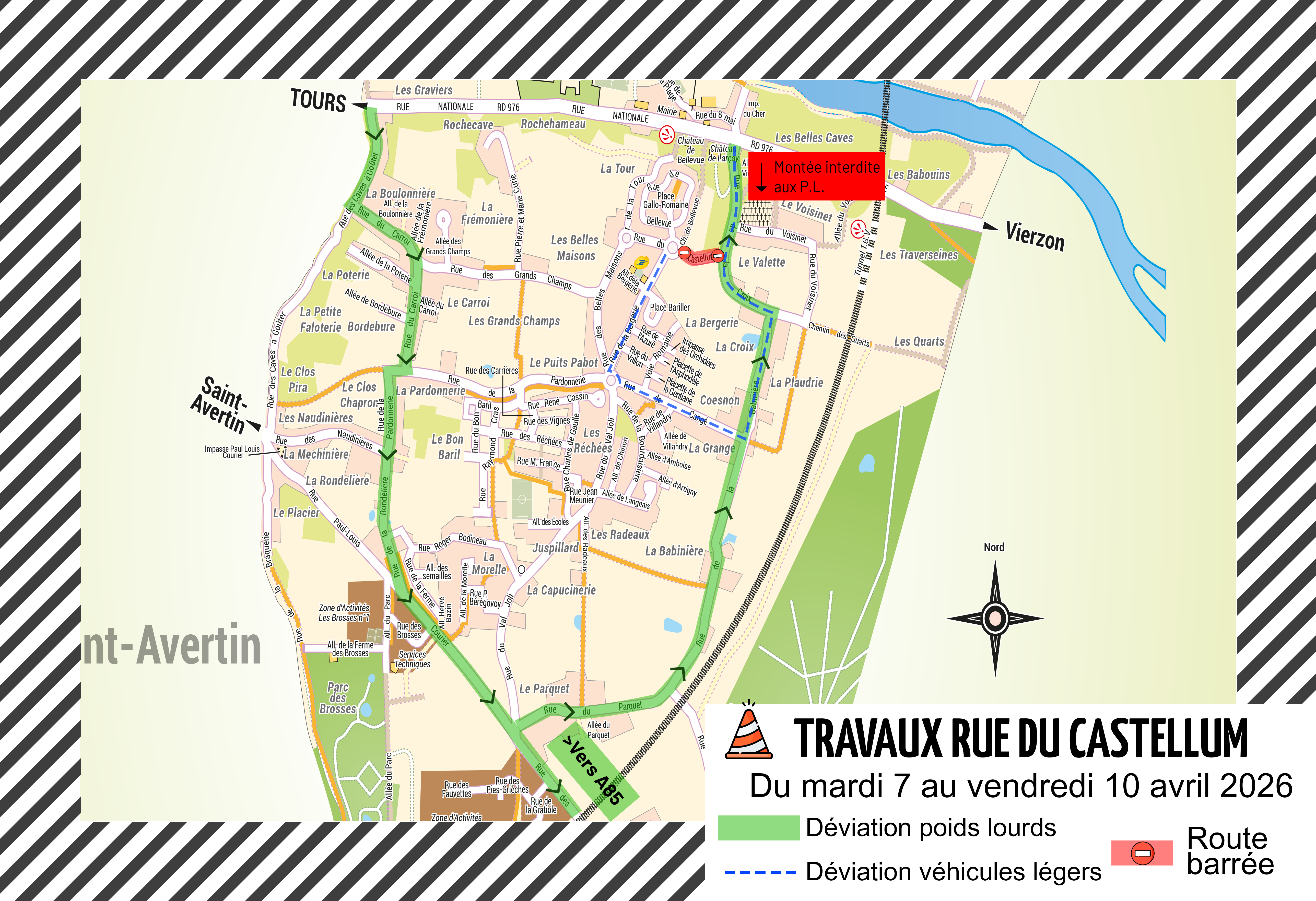 Dans le cadre de travaux menés pour VEOLIA, la rue du Castellum sera barrée à la circulation du 7 au 10 avril 2026, sauf pour les riverains.